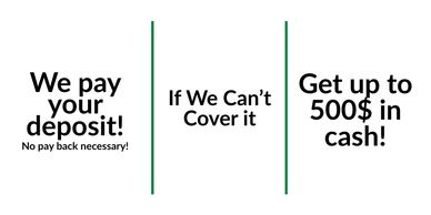 If you don't qualify for Deposit Grant Program. Don't worry! On top of the cashback. We also work with 3rd party companies that work with both the client and the apartment complex. Where they will cover your deposit upfront, in exchange for a low monthly fee. *The apartment must be eligible*